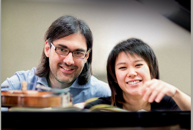The second half moved in brighter directions. First came the rhythmic firestorm of Bartók's Rhapsody No. 2. Here, pianist and violinist played off each other with the apparent ease of long musical partnership. They pulled the listener into a frenzy of whip-saw rhythmic playing with the abandon and energy of a Budapest town band. These spicy, perky rhythms built on each other in a dizzying fashion, culminating in a whirling tumult of sound.