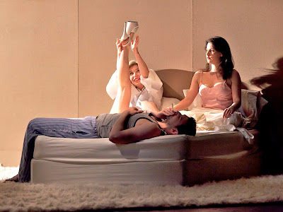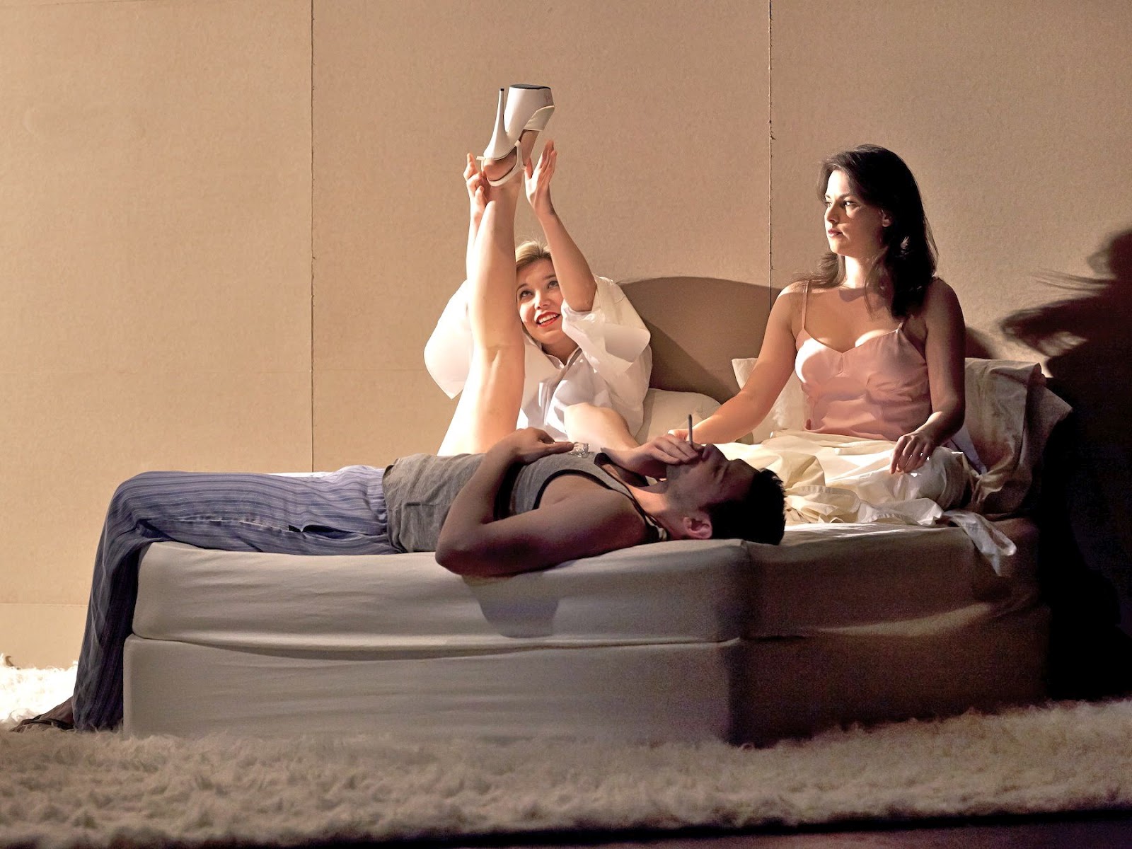 Mr. Alden places all three singers in bed together at the start of the one-act piece, an idea which recalls the opening of