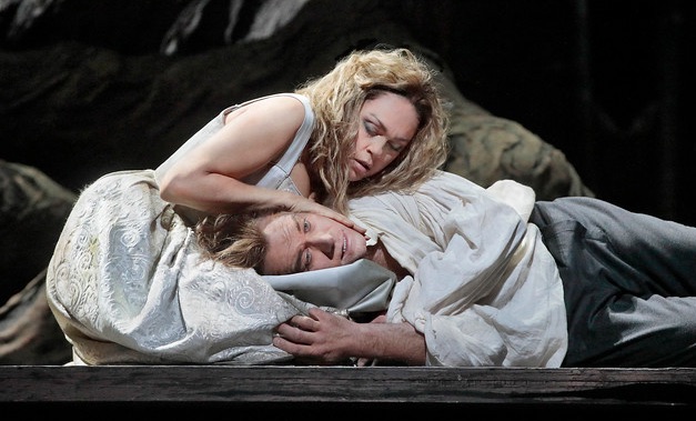| All dried out: Kristin Opolais (top) is the mermaid and Brandon Jovanovich is the Prince in the Met's new Rusalka. Photo by Ken Howard © 2017 The Metropolitan Opera. |