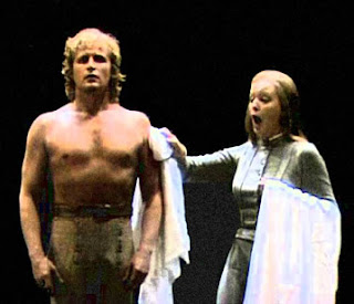 Act II introduces Brunnhilde, sung by Welsh soprano Gwyneth Jones. Jones is a singer with a powerful instrument who, through the course of a long career, was beset by vocal inconsistency. However, she is a consumnate actress, and although her voice isn't always pretty, she sings with passion and power. Few other Brunnhildes capture the character's blend of bravado, innocence and vulnerability. This comes across most strongly in the Annunciation of Death scene. Boulez makes that famous three-note figure shimmer in the air as Brunnhilde confronts (a now shirtless) Siegmund and informs him that he is going to die in the coming fight. This is the scene upon which the whole Ring turns, and the actors are superb.