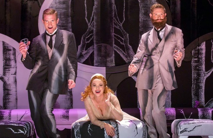 | Joshua Weilerstein (standing) conducts Jonathan Biss (seated, center) and the Orchestra of St. Luke's on Sunday afternoon at Caramoor. Photo by Gabe Palacios © 2016 Caramoor Festival of the Arts. |