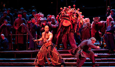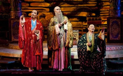 Two things stuck with me about that Turandot. First, the riddles. I spent hours poring over them in the libretto, trying to fathom why the answers were "fire," "blood," and "Turandot." The second was the three "masque" characters of Ping, Pang and Pong, who serve as a miniature Greek chorus, commenting on the action and presenting the face of Chinese government bureaucracy.