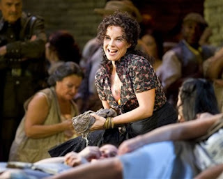 The arc of Don José's descent--from ordinary soldier, to romantic bandit, to madman was expertly played by Mr. Jovanovich. His performance jelled in Act II, when he sang the Flower Song, that K2 of French tenor repertory. He was sure-footed throughout the shifting tonalities and textures that illuminate the diseased landscape of the character's mind. His Don José was a good soldier who went a little nuts in prison, only to have his attraction for Carmen flower (pun intended) into full-on obsession. In Act III and IV, as the obsession turns violent and abusive, Mr. Jovanovich's performance only got better. He made the final murder seem matter-of-fact, which is precisely what made it so chilling.
